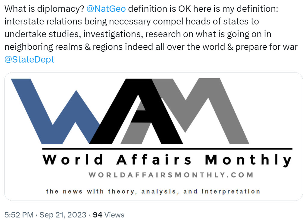 There's lots of reasons you want to avoid war. It's super risky, it super costly, and it's super destructive. To say that the function and purpose of diplomacy is to avoid war is not inaccurate. But again this is not really what diplomacy is. Diplomacy is what a state does in the world, to survive in the world, to understand the realities of the world, to predict what's going to likely happen. If you are inept at diplomacy then it is likely you will be destroyed in war.
