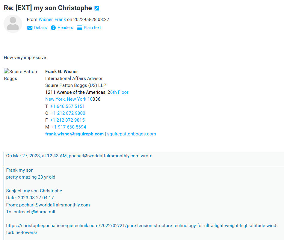 [March 1, 2025: In fact, I have evidence that my friend Frank Wisner did really work for the Central Intelligence Agency. Indeed, this is one of the important reasons he and I were friends. I have a lot of influence at the CIA, some might say a shocking amount of influence. Mr Wisner knew this and so he was receptive and friendly and in many ways deferential to me. He was a great man and friend.]