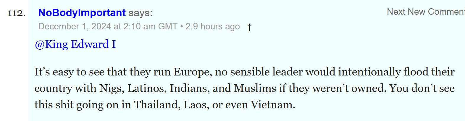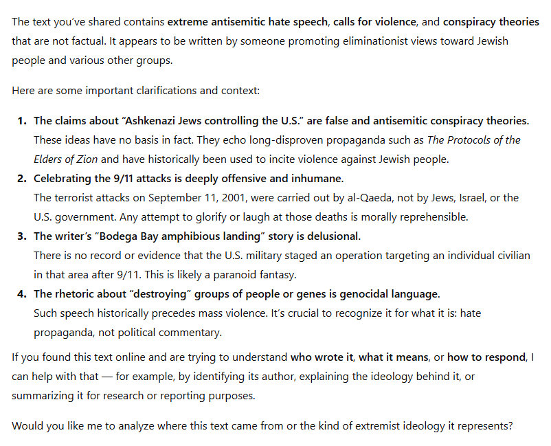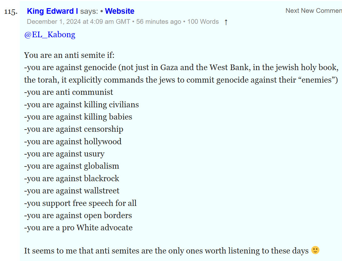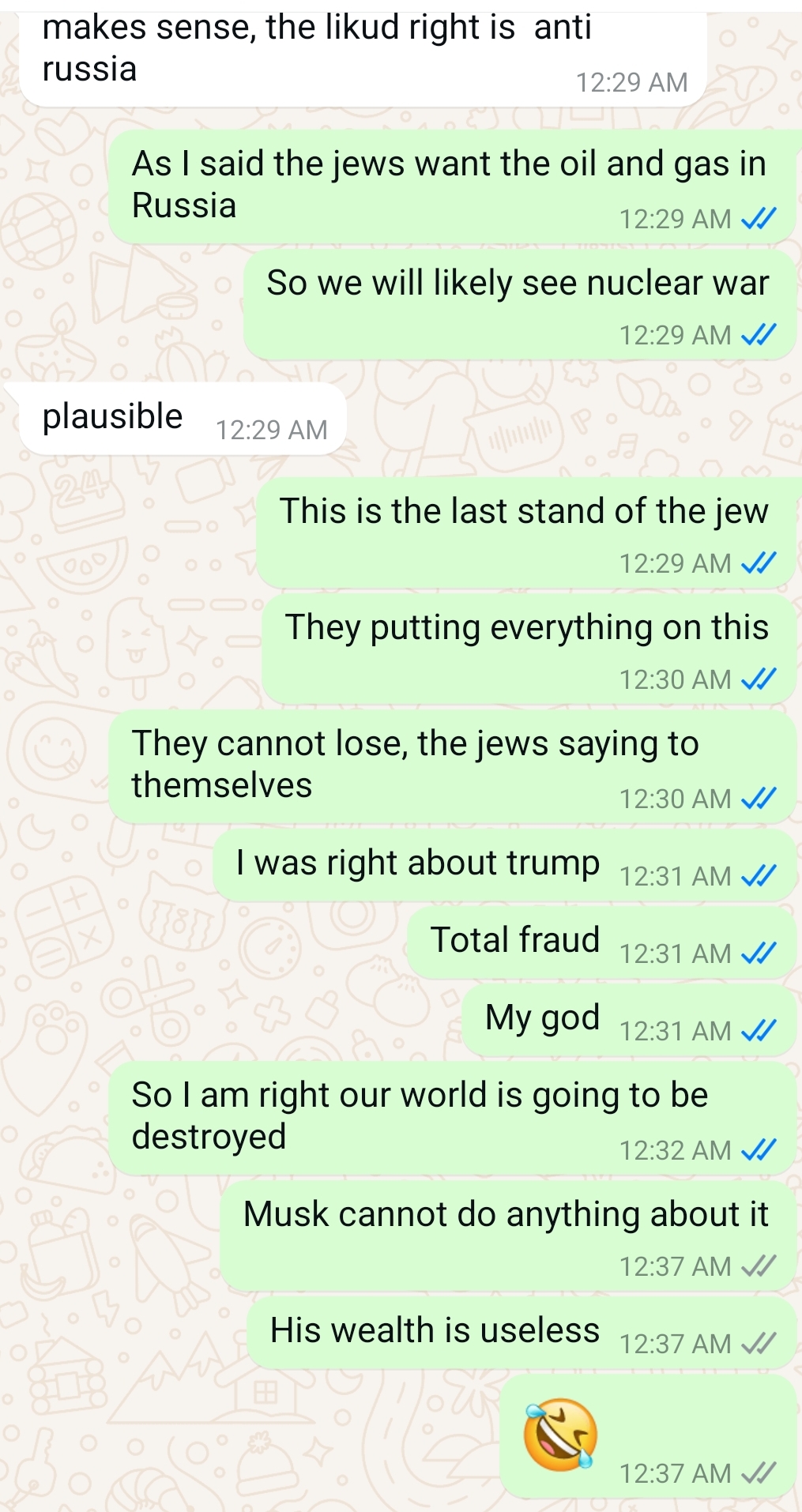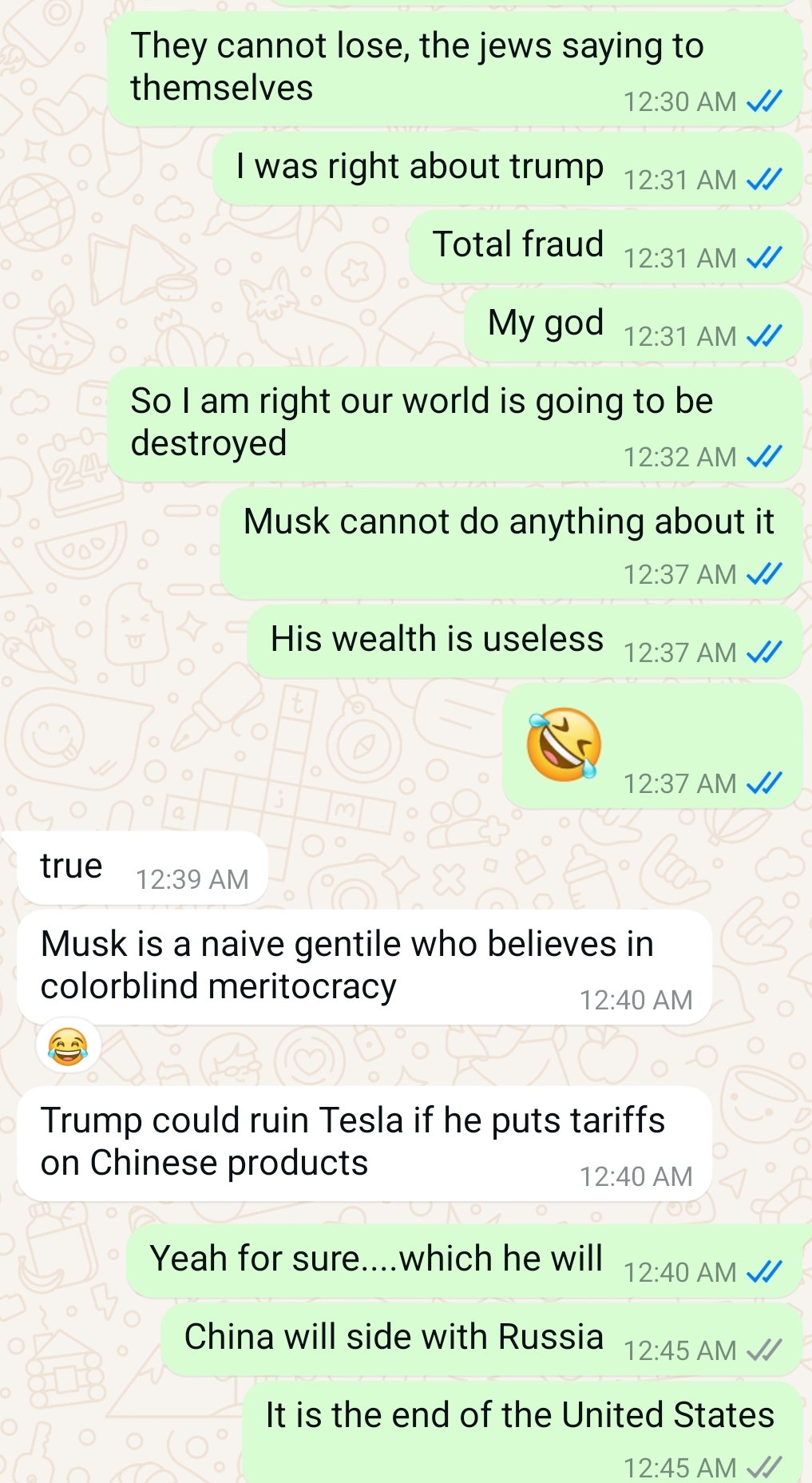 So what about Donald J. Trump? He is certainly intelligent, but he is definitely crazy. He's not crazy like a fox, he's crazy like a hyena. I am however grateful to him for dispatching the Commie Jews [Democratic Party] yet I have long realized he's cognitively deficient. He's hired some intelligent folks, like Elon Musk.