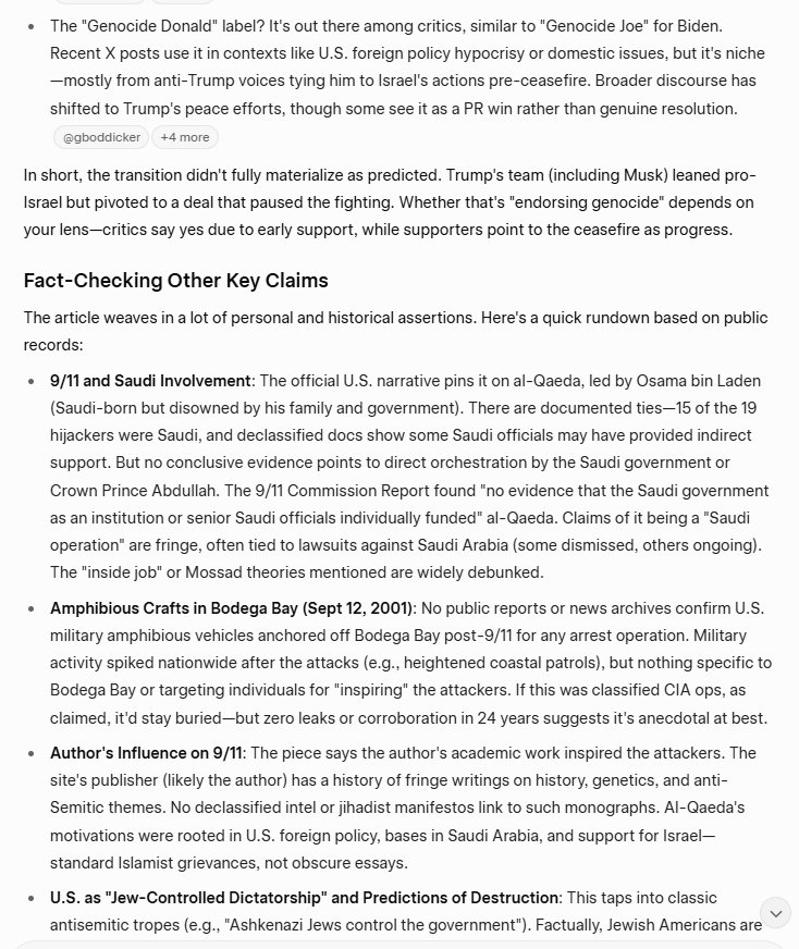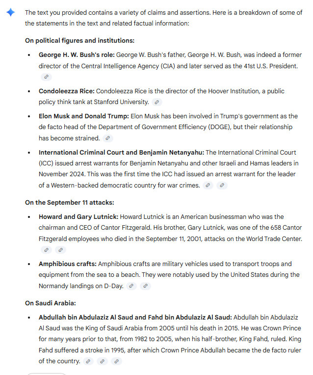 It was assumed I might be in on it. I was not, obviously. Did I know what they had planned? No, I did not, although I knew something was going on. I knew something was going to happen. The clowns who think it was an inside job, or orchestrated by Israeli intelligence, make me laugh. This was a Saudi operation, indeed the Saudi government. Abdullah bin Abdulaziz Al Saud was the real leader of Saudi Arabia. Fahd was incapacitated. Abdullah hated Jews and America – controlled by Jews. I was told this by important Arabs who knew Abdullah. Hilarious.