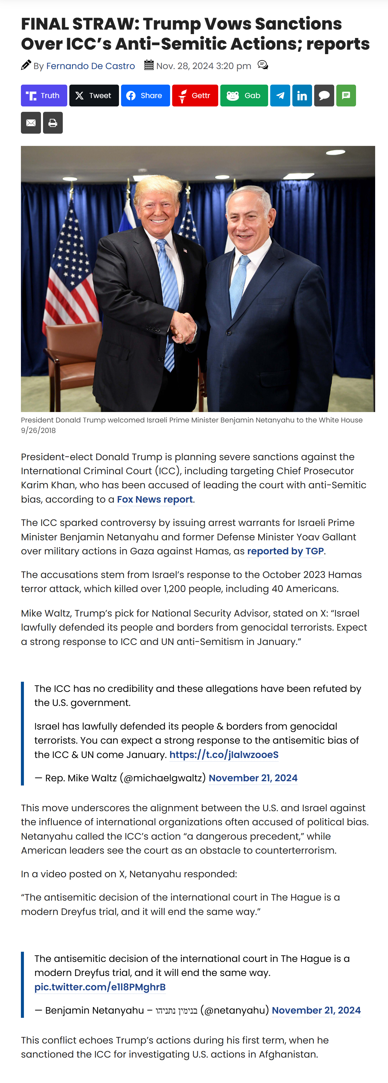 The International Criminal Court will likely indict Trump like they did with the shithead Netanyahu. If the kook Trump endorses genocide, and it looks like he will, then he will be arrested. I expect he will be. Hilarious.