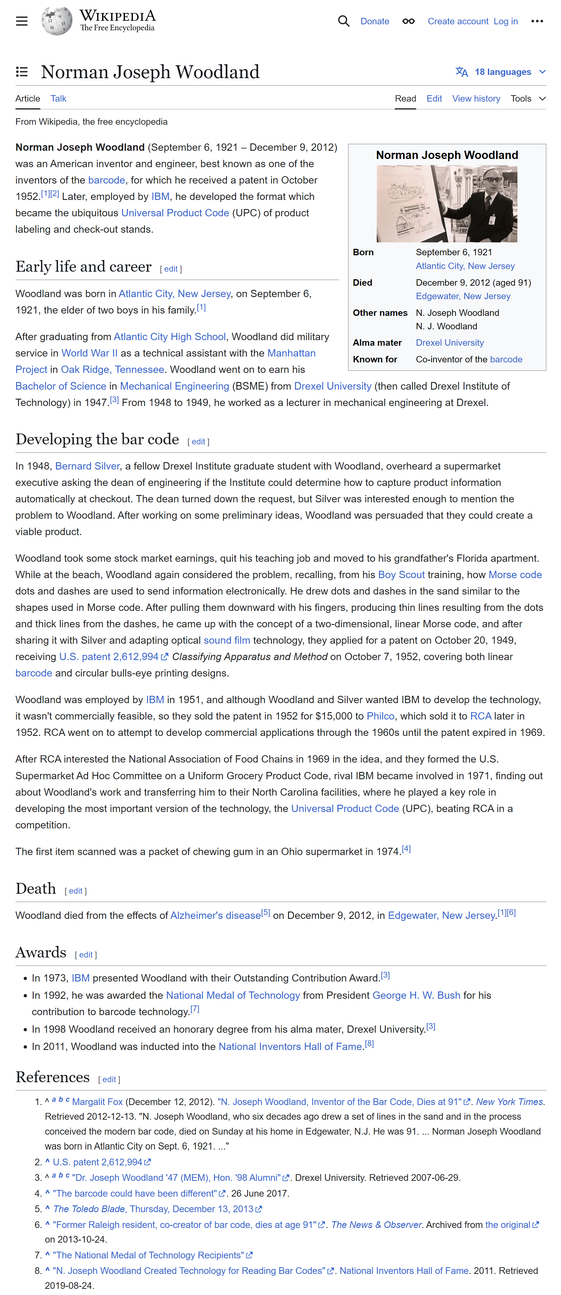 No one would say this is easy. Ever heard of Joseph Woodland? William Shockley? Probably not. Woodland, with another engineer, invented the barcode. You are probably familiar with the barcode! I publish down below some information about Woodland and his work and life. This is challenging, tough work. This is American innovation and engineering, but as Mr Phelps rightly argues the quest to improve and do better extends to virtually everyone.