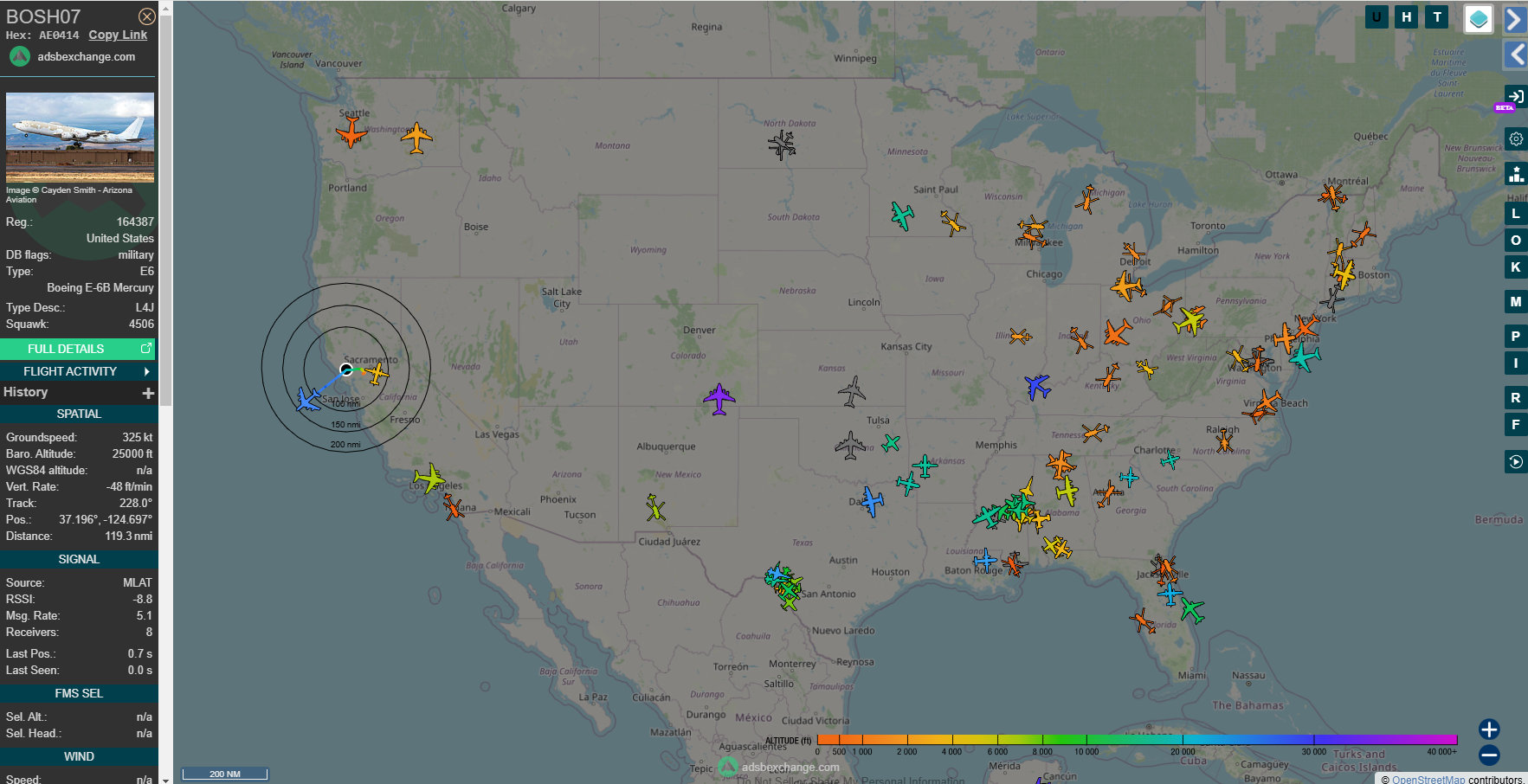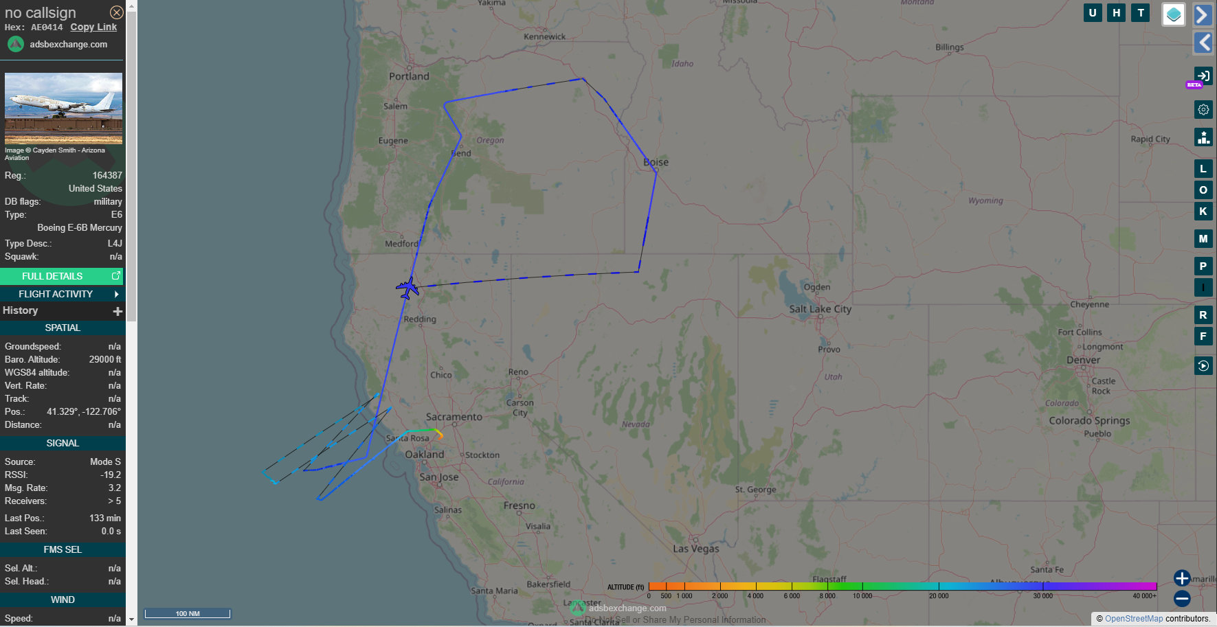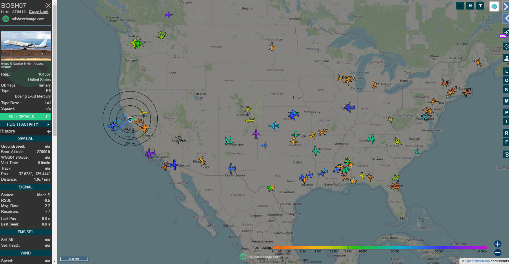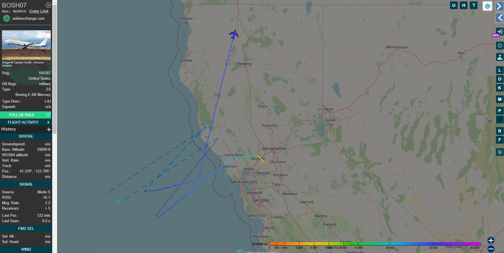 At the moment an E-6B is flying near me, in California. See the 4 screenshots below taken from adsbexchange.com. The E-6B is for responding to a nuclear attack, or any kind of attack. To protect the president or head of state. The president is brought to the aircraft, and the aircraft remains in the air. Why is this aircraft near me and not in Washington? Perhaps you can guess why.