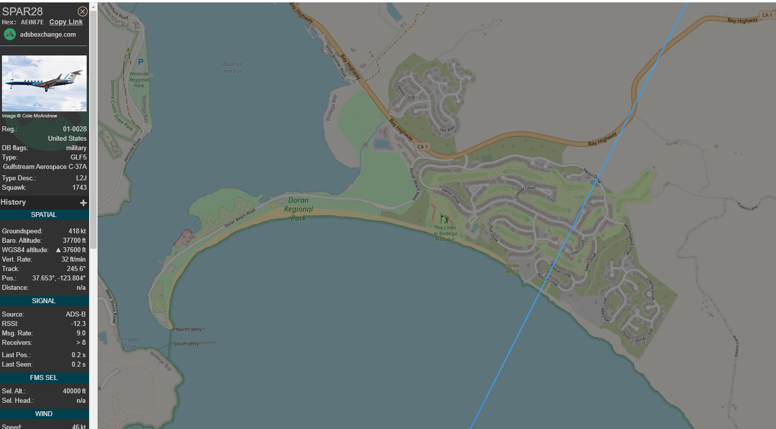 Am I suffering from paranoid delusions? Some in “authority” might want to say so, but this is ridiculous. The US government is criminal and most Jews are criminals. This is the reality. The US Department of Justice told me to call the FBI when I told them what happened. I very much suspect the Pentagon and US government know there was a sniper – but will not make this information public. For obvious reasons. Down below you will see a screenshot of a Gulfstream C-37A/B from adsbexchange.com. The United States president has about 9 of them, and they are used for special missions, by high ranking cabinet and Pentagon officials. On May 5 one of the Gulfstream C-37A/Bs flew precisely over where the sniper was standing on the edge of the cliff in Bodega Harbour. That's right, precisely over. They are based in Maryland, in Hawaii, and Germany.