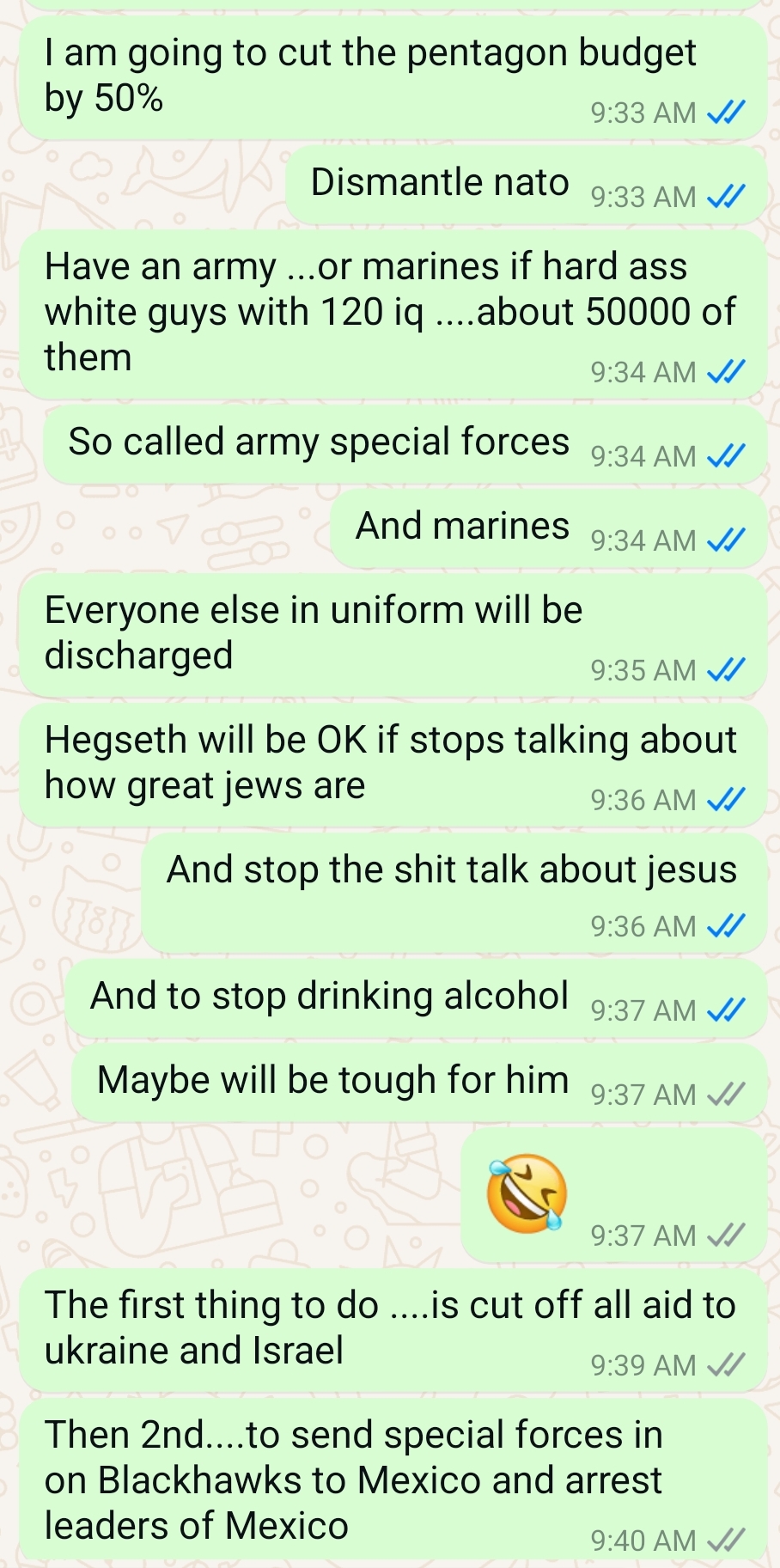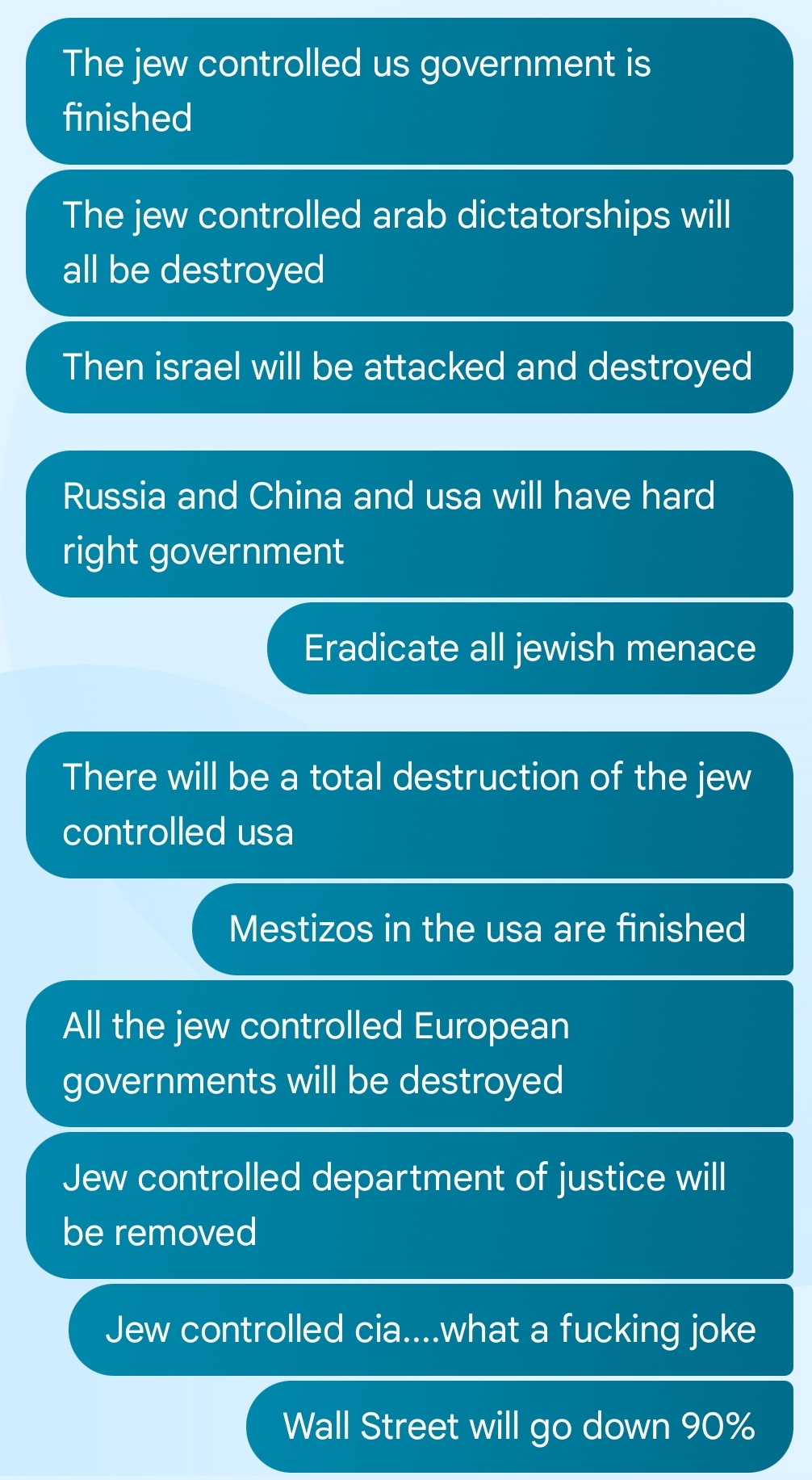 Ashkenazi Jews can try hard to stop it, but they will fail. These are text messages to one of my sons. Criminality will be destroyed. I will build a global civilization, quack Jews will no longer be able to do their garbage policy and create a nightmare for everyone.