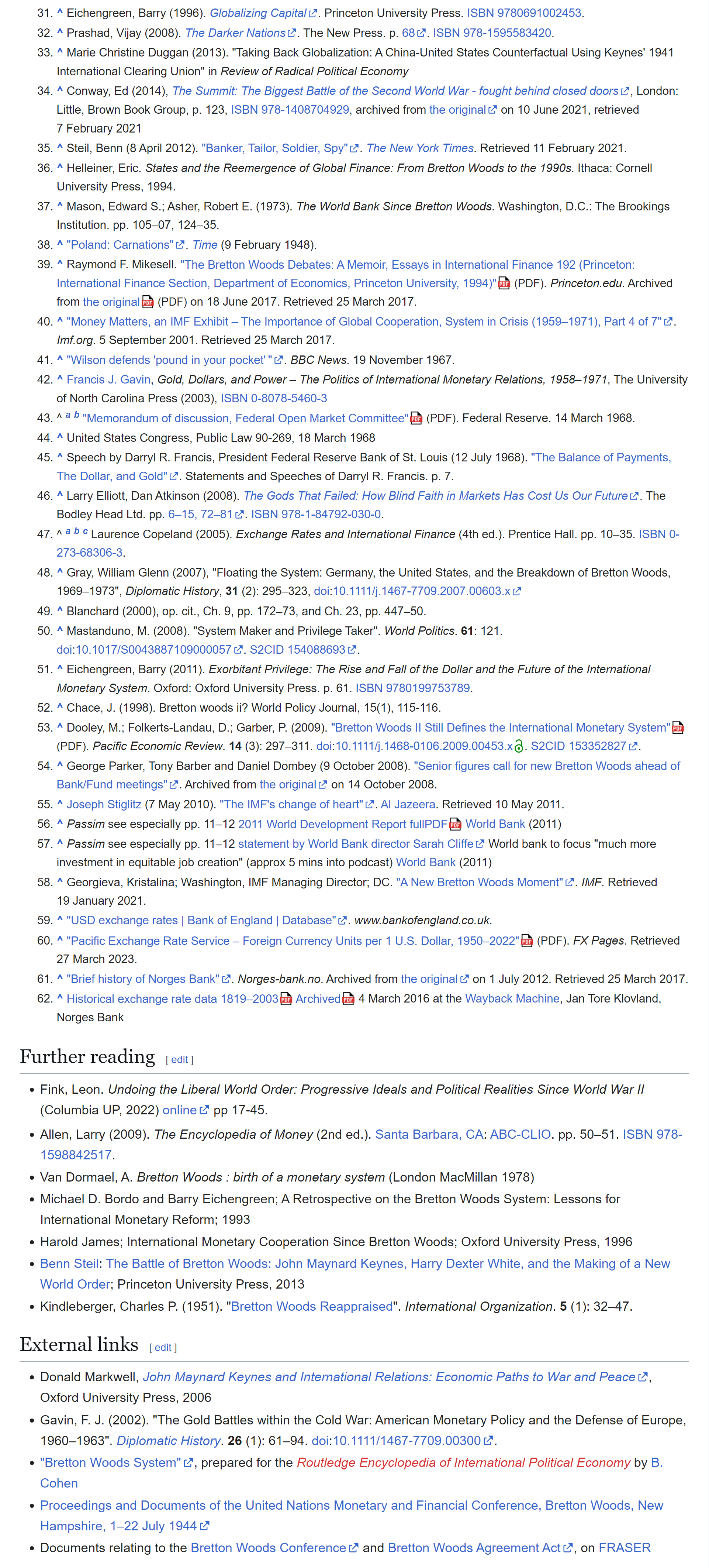 “On 15 August 1971, the United States ended the convertibility of the US dollar to gold, effectively bringing the Bretton Woods system to an end and rendering the dollar a fiat currency. Shortly thereafter, many fixed currencies (such as the pound sterling) also became free-floating, and the subsequent era has been characterized by floating exchange rates. The end of Bretton Woods was formally ratified by the Jamaica Accords in 1976.” [“Bretton Woods system” from Wikipedia]