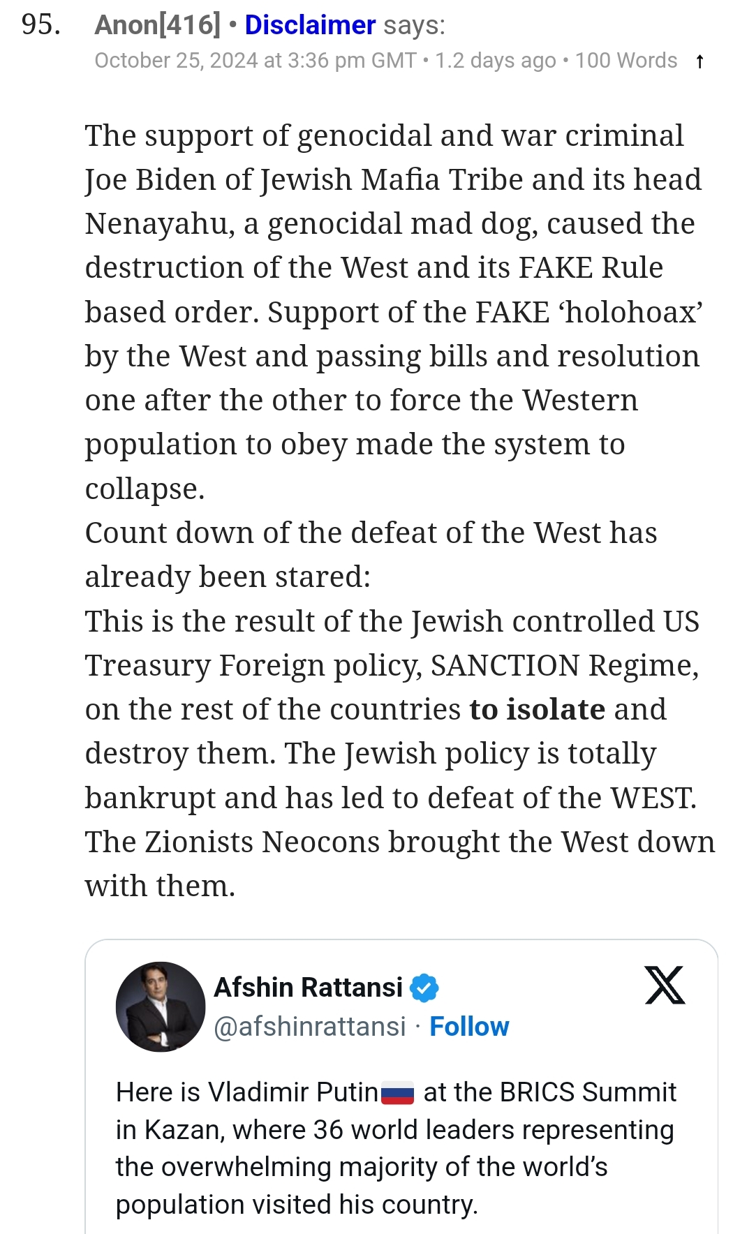The structure of international relations that got established with the conclusion of WW2 has now ended NATO is finished Israel will be destroyed also the Jew-controlled American government