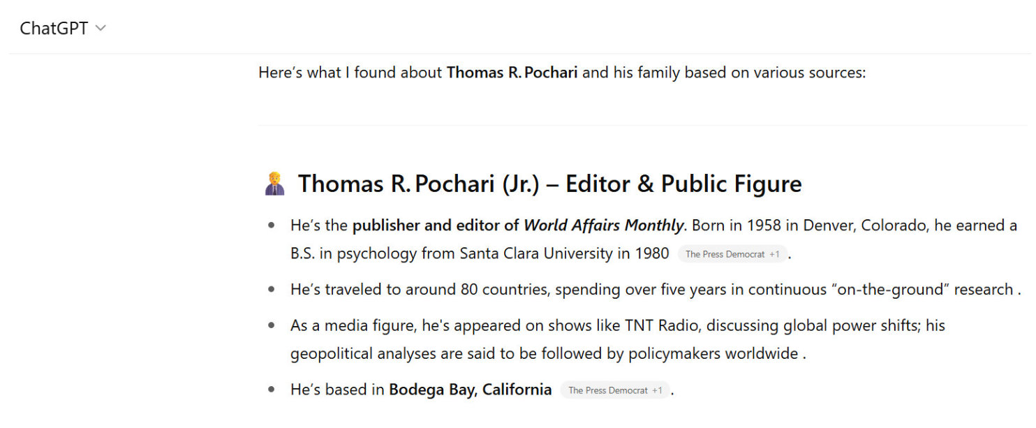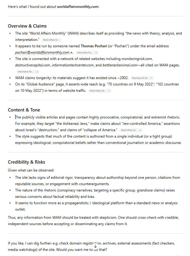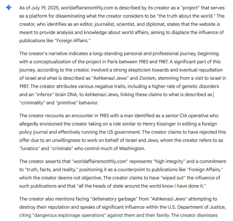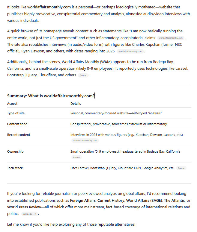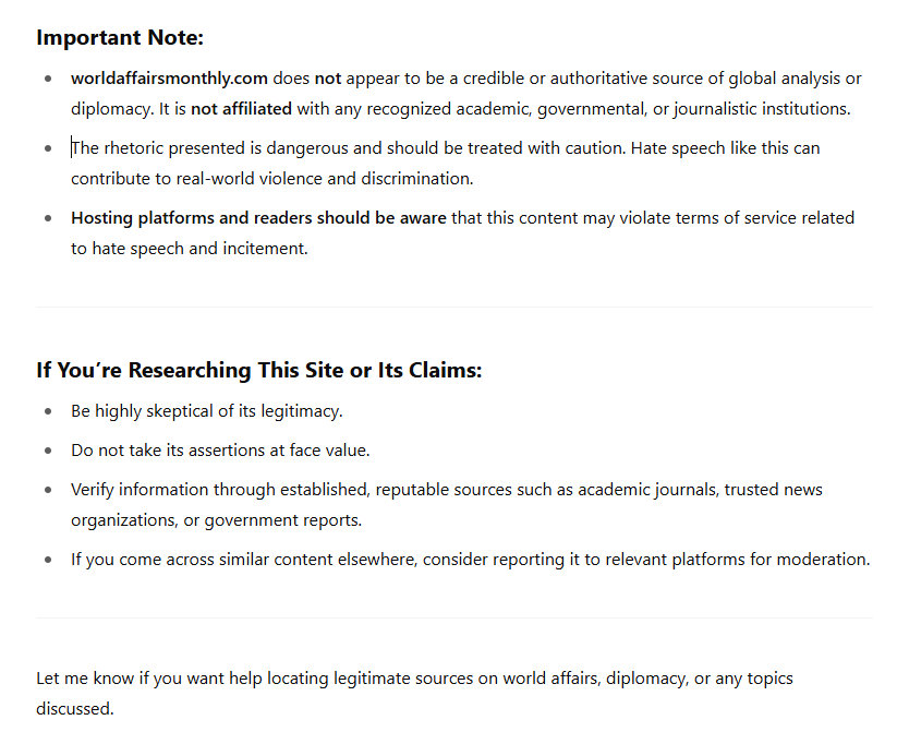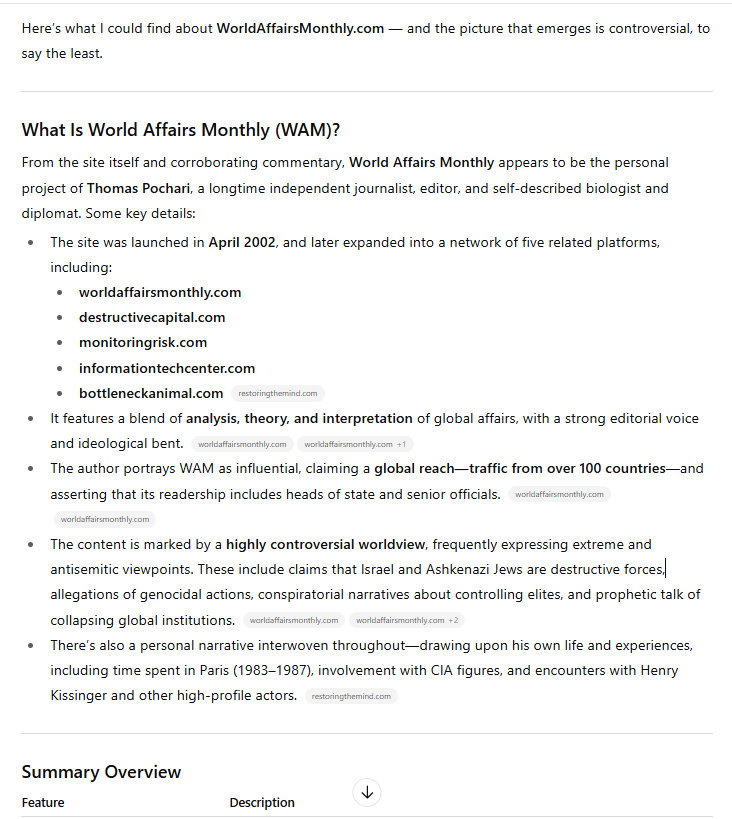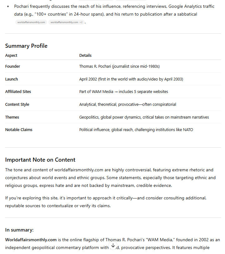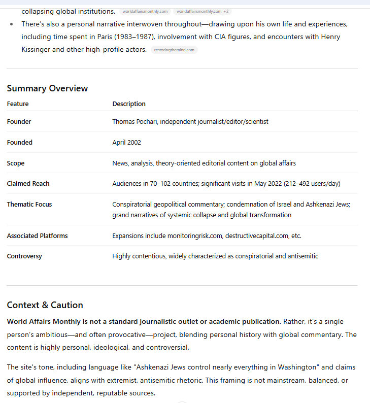 I noticed recently BBC is imitating me. They now do audio interviews, over the telephone. They just did one with Donald Trump. See the image below. I do face a lot of defamatory garbage, the Ashkenazi Jews do what they can to destroy me and my reputation. This is absurd, of course. It is laughable. As I said, they are criminals. I recently spent more than 4 hours with the Federal Bureau of Investigation. I have a lot of influence at the United States Department of Justice. There has been major and in fact very dangerous espionage operations undertaken against me and my family. The fear of me and my influence is obviously pretty serious. Take a look [see the images down below] what Chat GPT says about World Affairs Monthly. Sam Altman is obviously a lunatic. He's homosexual, apparently.
